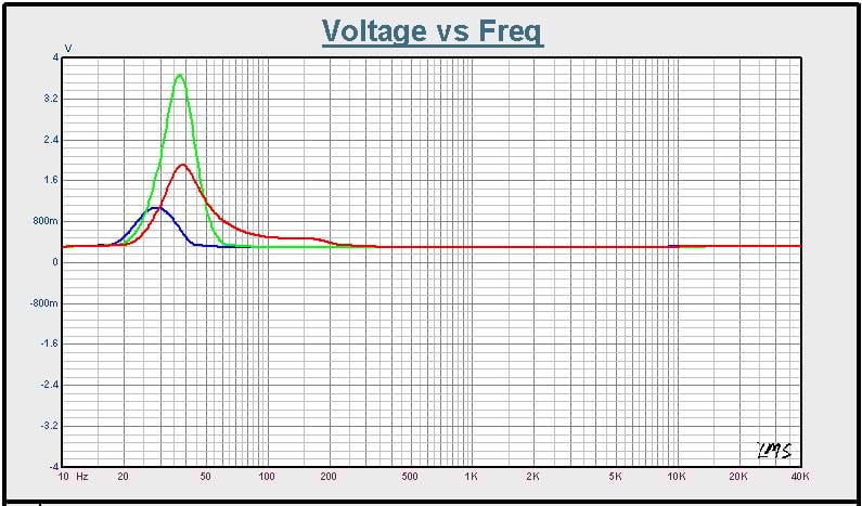 Green curve = 80 Hz, Blue curve = 40 Hz.