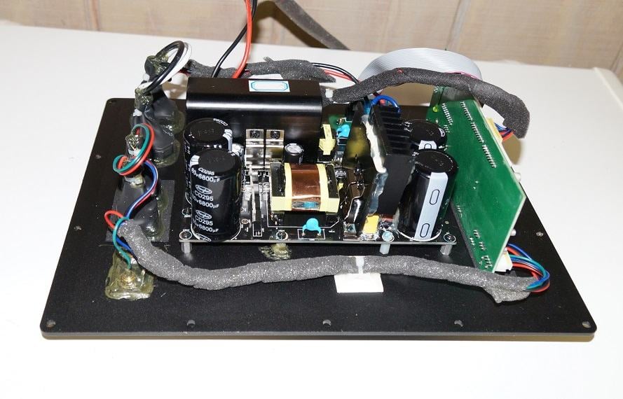 2” THX Ultra use the same 500-watt RMS Class D amplifier. The only difference between them are the internal DSP settings. The amps have dual RCA inputs, and an XLR input and output. Aside from the standard gain knob, crossover switch, and crossover frequency knob, the controls feature a variable phase knob and an EQ switch. The EQ switch can change the mode from either a THX-certified setting or an ‘extended’ mode that permits deeper frequency extension. Examining the inside of the amplifier, we see four hefty capacitors and a DC transformer, along with a heatsink and what looks to be a heatshield that could possibly function also as an EMI shield. To my untrained eye, the build quality looks good: clean, heavy-duty components, with a logical layout. An amplifier with this build quality and feature set strikes me as very good for this price point, especially for the $500 10” THX Select.