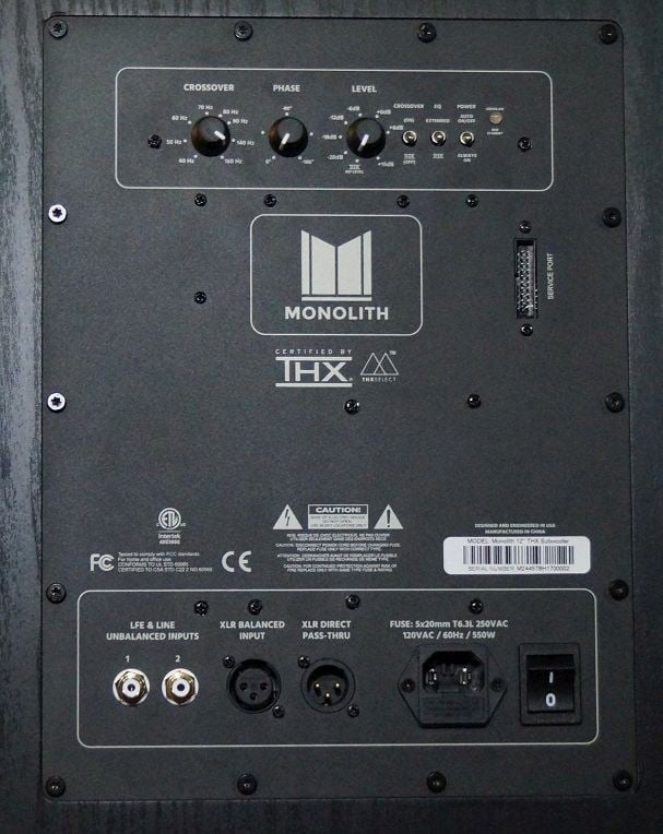 al side of music, I used the album “Organ Concertos BWV 592 - 596,” which is a recording of organ concertos by Johann Sebastian Bach played by Simon Preston. This is a relatively popular pipe organ album that shows off Preston’s lively playing style on the massive Marcussen pipe organ in the 800-year-old Lubeck Cathedral. The original musical compositions are not really by Bach himself but are Bach’s transcriptions for organ of instrumental pieces by Antonio Vivaldi and Johann Ernst von Sachsen-Weimar. Not every song on this recording uses the deeper notes of the organ’s capability, but some do take advantage of the bass power of this ‘king of instruments.’ An album like this doesn’t really blast subwoofers a whole lot, but it does use them frequently and is good for demonstrating a subwoofer’s usefulness when the sub is properly integrated with the main speakers. When the blend between sub and main speakers is seamless, the pipe organ and the acoustic environment that it is situated in become a singular experience. Of course, the subwoofer has to be up to this task. It has to be convincingly powerful but not overbearing. It therefore must have adequate dynamic range and also a linear response. I am happy to report that the Monolith THX subs were up to the task. The deeper notes of these organ concertos were given a solid foundation by the THX subs without an artificial rumble or boom. I switched from the 10” THX Select to the 12” THX Ultra midway through the album and couldn’t really tell any difference between them for this music. Either one would be fine for pipe organ music, but of course the 12” THX Ultra is inevitably going to be a bit more powerful for those who like to listen at louder volumes.