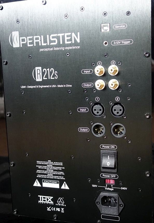 There are no controls on the back panel, and controlling the sub is done through a 2.4” LCD color touchscreen mounted on the top front of the enclosure, so it is much easier to adjust than fiddling with knobs on the back panel. The R212s can also be controlled through Perlisten’s subwoofer control app for those with iOS and Andriod OSs. Naturally, with such a powerful processor, many aspects of operation can be fine-tuned to the nth degree. Among parameters that can be controlled, the user has access to a 10-band parametric equalizer, a 0-270 degree variable phase, a 40Hz test tone generator, independent gain and wake-up controls for each of the sub’s four inputs, time delay, low-pass filtering from 30Hz to 160Hz at 6,12, 18, or 24dB octave slopes, and different operating modes for small rooms, large rooms, and THX mode. There are four inputs mirrored by four of the same style outputs: two unbalanced RCAs and two balanced XLRs. The sub can be hooked up and shared with multiple systems since the inputs can all be independently controlled. What is more, the volume controls on the R212s can control groupings of Perlisten subs, so if you have a multi-sub system of up to eight subs, you can use the controls to attenuate the entire system rather than having to change the gain on every single unit.