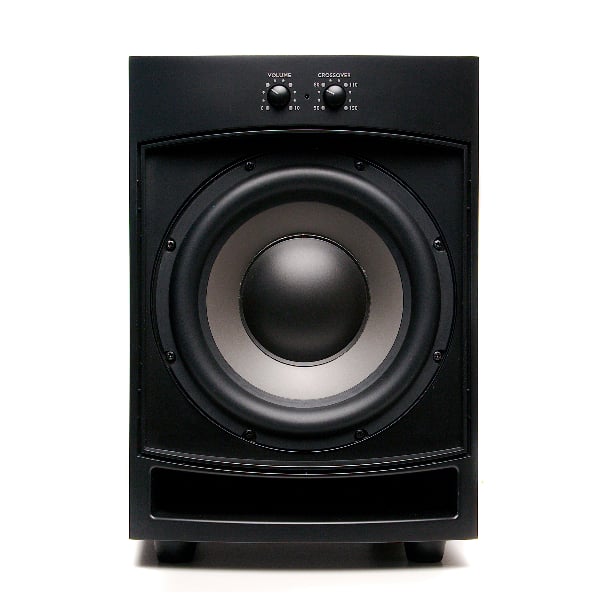 It is a bass reflex design sporting an 8” front-firing driver with a front-firing slotted port directly below the woofer. The 8” driver is made of Polypropylene, a very common woofer material, with an oversized rubber surround for long cone excursion. The subwoofer is rated with a -3dB point at 35Hz, but usable bass down to 31Hz. What exactly is considered “usable” is open to interpretation. Still, for a $449 subwoofer, 35Hz is reasonable if rated at high output levels, but some of the competition is rated to play with a -3dB point of 25Hz or lower. The 35Hz rating says to us that PSB designed the subwoofer for higher output instead of a lower frequency response.