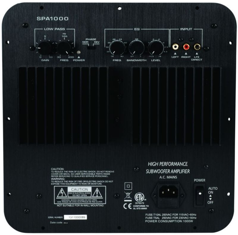 - Frequency response : 22-200 Hz +/-3.5 dB