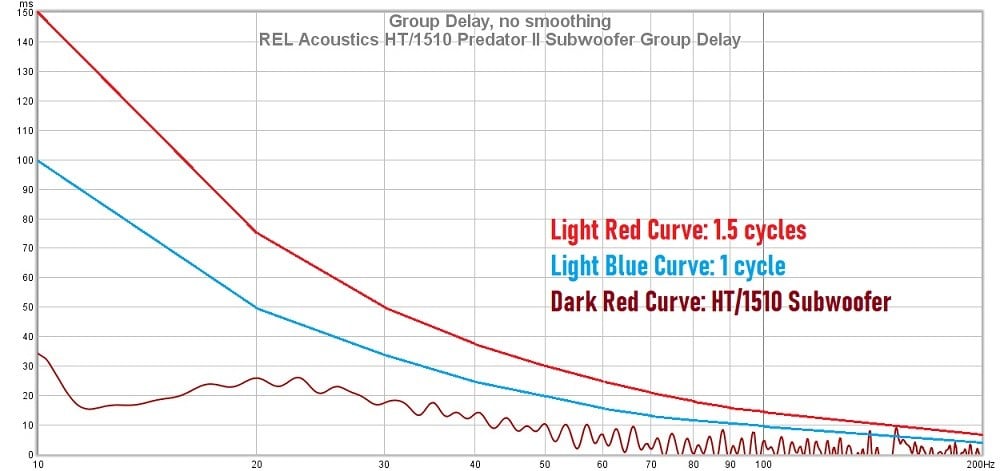 This leads to one of the HT/1510’s strengths: its time-domain performance. This sub has extremely low group delay across the entire bass frequency range, and that means it doesn’t allow the reproduced sound to last much longer than the input signal at all. Bass notes will not linger longer than they are supposed to with the HT/1510. This has always been an important performance criterion for REL Acoustics, but I don’t regard it as a serious problem so long as it is kept under a certain level, and most competently engineered subs are able to keep it below a level where it could become an audible problem. For this reason, I regard this more as an academic achievement rather than one that brings practical, real-world benefits. I think many instances where the bass is heard to be laggy or boomy are due to room acoustic setup problems rather than the decay times of the subwoofer itself. In my view, it is the frequency response problems that come from room modes that are usually the source of any perceived lack of “quickness” or “tightness” (for more information about this issue, Audioholics has multiple articles that cover this problem in our room acoustics article category). Nonetheless, if you want a subwoofer with excellent group delay, the HT/1510 is a great choice.