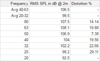 RSL Speedwoofer 10S CEA 2010 Measurements 2 meter, RMS