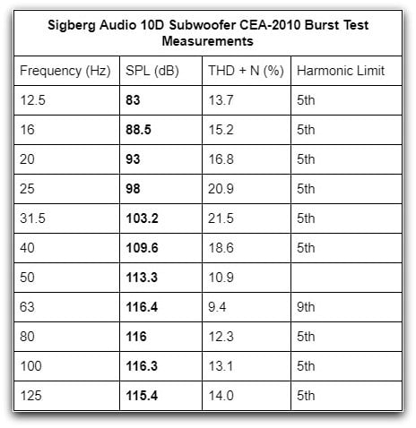 Sigberg Audio 10D Subwoofer Measurements & Conclusion