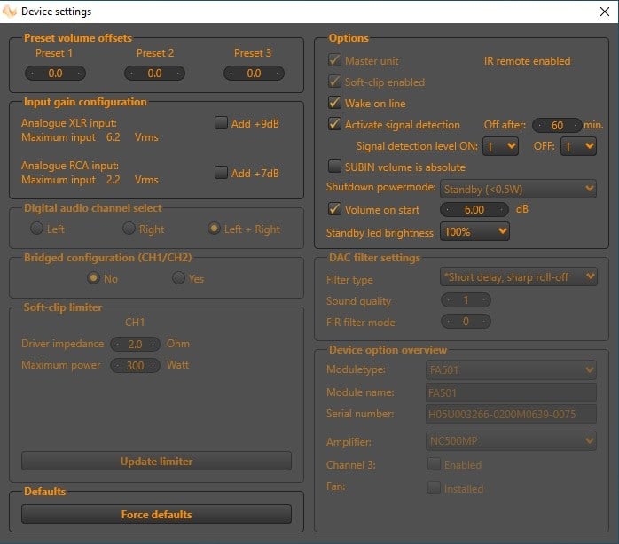 - Amplifier: 500W Hypex nCore, DSP enabled amplifier