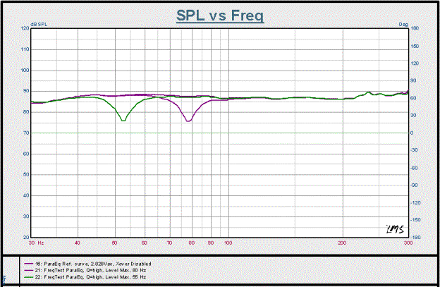 Figure 12: Parametric EQ, variable frequency function, 2.828Vac drive level, scaled to 1m.