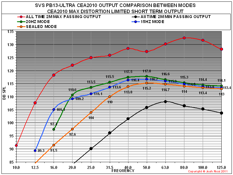 SVS PB13-Ultra: 110dB Power Compression Comparison (20Hz, 15Hz and Sealed Mode)