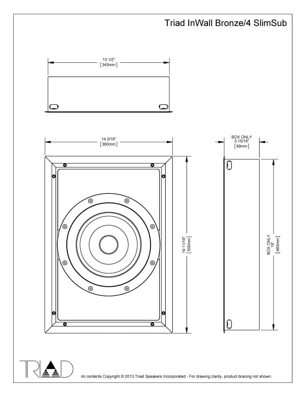 As many of our regular readers are aware, generating deep, powerful bass for music or home theater usage generally calls for a fairly large and capable subwoofer. So what happens if you'd like credible low end reproduction, but for lack of space or aesthetic concerns, you need something effectively invisible? Enter the Triad InWall Bronze 4 Slim Sub. For those unfamiliar with Triad, they aren't exactly a newcomer to the A/V market, having been founded in 1982. Specializing in custom solutions, the vast majority of Triad's speakers are built to order in the US. The Bronze/4 Slim Sub is Triad's latest in-wall subwoofer offering, made to quite literally disappear into a room.