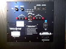 Around the back of the Velodyne HGS-15X is the enormous subwoofer plate amplifier. The Velodyne HGS-15X subwoofer amp has nearly all the inputs, outputs, and control devices that anyone would ever need, including:
