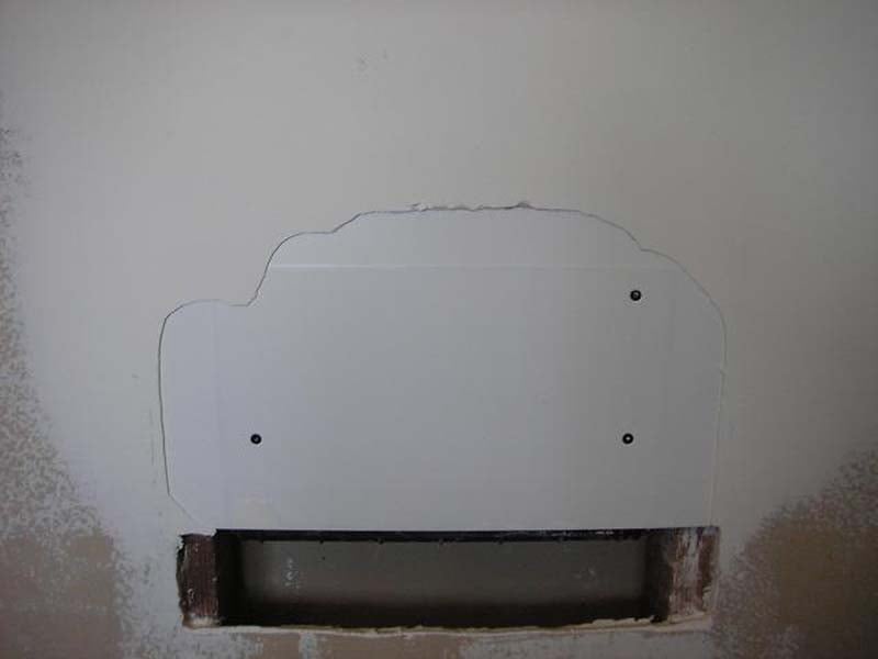 enclosure is covered with sheetrock. Only the small unobtrusive grill reveals