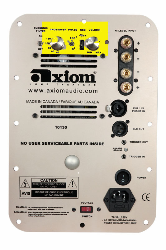 In almost all circumstances we recommend bypassing the subwoofer's internal bass management facilities in favor of the one found in your A/V receiver. You can do this either by engaging the LPF bypass switch (if available) or setting the crossover to its maximum setting (in the case of the Axiom EP800 pictured, that’s 150Hz).