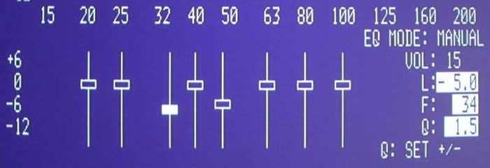 For example, if you have a measurable bass peak centered at 40Hz that is 10Hz wide, you can setup an EQ band of 40Hz with a Q of 4 to reduce this problem.