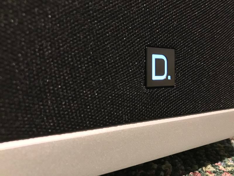 When the speakers receive an audio signal and turn on, Definitive Technology has a cool feature on the speakers where the letter “D” on the front base of the speaker lights up. If you’re in a dark theater environment and don’t want the distraction, you can turn the light off with a switch on the speaker’s rear panel.
