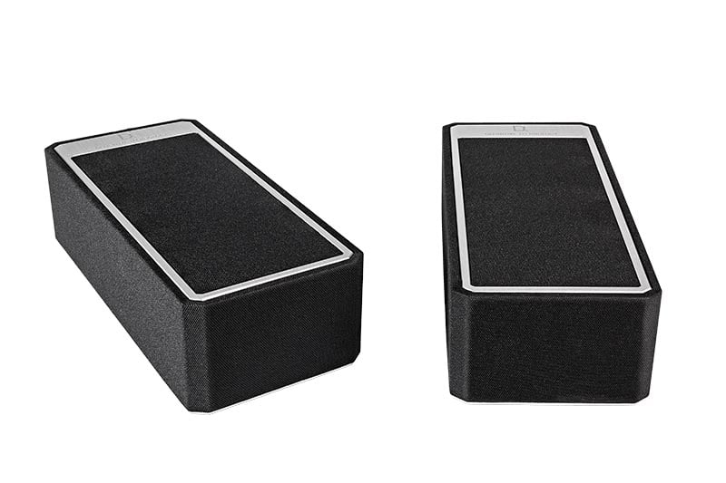 The flagship BP9080x is physically larger than the BP9060 and the built-in Dolby Atmos enabled speakers on top are housed in a silver grille. You don't have the option for another color. Furthering the visual appeal for many, the entire speaker is fully wrapped in an acoustically transparent grille. You can have any color you want so long as it's black.