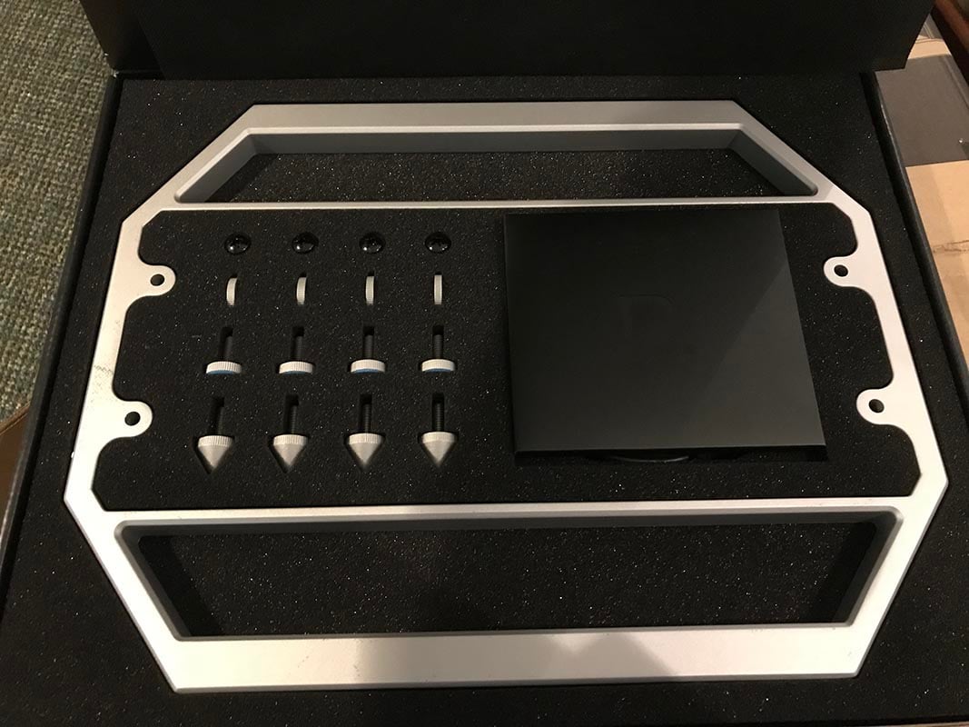 The accessories box comes with the speaker's footing and spiked feet options. There are traditional spikes and flat feet for hardwood floors.