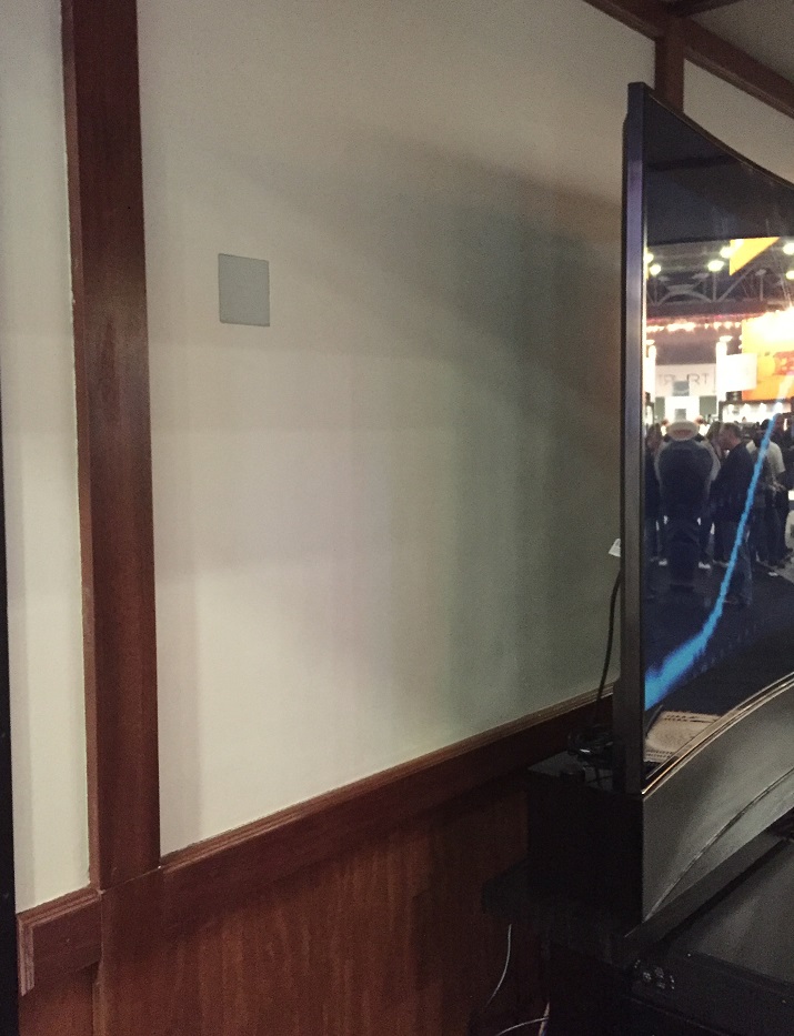 James was showing off their Small Aperture Speaker as well. You can see a bit of the SPL3LCR-CRV in the left picture.