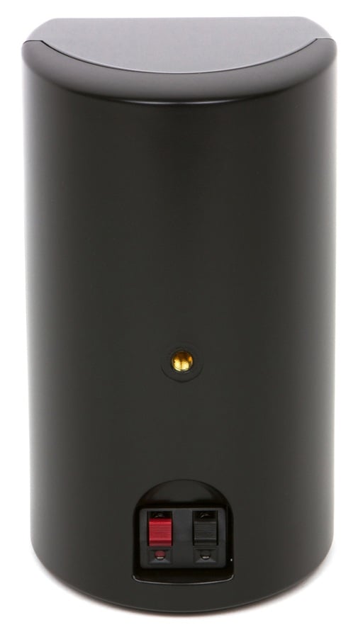 The satellite speakers measure just 6" tall and around 3.75" deep and wide. They have a spring-type speaker connections (expected at this price point) and a threaded insert for use with aftermarket wall mounts. Wall mounts are included and floor stands are available for the satellite speakers. They are constructed out of ABS plastic and are sealed for easy placement. The center channel has a small stand for cabinet mounting (with a 45 degree range of motion for precise aiming) as well as the threaded insert on the back. It also sports spring-type speaker connections but they are located near one of the edges (which may make hiding the wire a bit more of a hassle than it could have been). It is larger at 9" wide (though it shares the other dimensions) and is also constructed out of ABS plastic. All the speakers have a gloss finish to match your new flat-panel display.