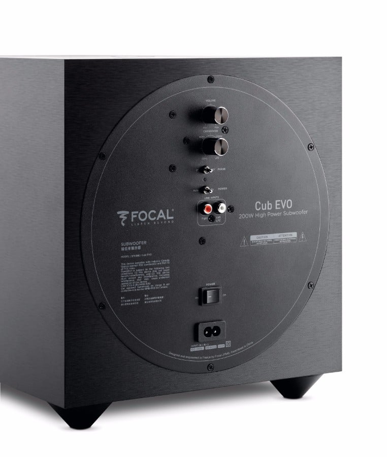 The Cub Evo Subwoofer is equipped with an 8” Polyflex speaker driver and a 200W Class D amplifier, it’s enclosed by an MDF structure and comes in a Black Matte finish. Focal claims the Cub Evo can deliver controlled bass with a frequency response that extends as low as 35Hz. Which is possible from a sub of this size and caliber, but don't expect anything more than a Small Bassaholic rating from such a design.