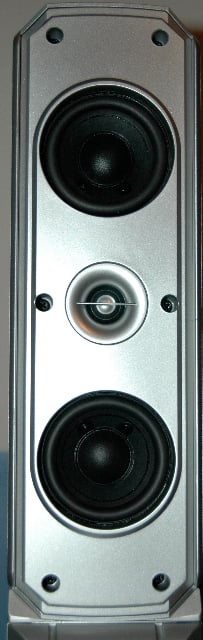 yspeakerThe set up began with unpacking the NS-AP8600 speakers and checking them out.  My initial impression of the speakers was not overwhelmingly positive and drew a simple, “those are ugly” from my wife as she passed by (ouch!).  The speakers are part of Yamaha’s Natural Sound line of speakers and are rectangular in shape.  Each of the 5 included speakers measures approximately 12” tall x 3” wide x 4” deep, (the center channel is identical, simply laid on its side).  The speaker stands (model no. SPS-8500) measure approximately 31” tall to give a total speaker height of approximately 43“ tall.  The 2-way acoustic suspension speakers contain dual 2.5” High Compliance Pulp Cone and Rubber surround woofers and a single 1/2“ balanced dome tweeter.  Each speaker is assembled in a silver, painted plastic cabinet that matches the speaker stands.  The center channel does not come with a speaker stand.  Yamaha includes enough small gauge speaker wire to set up the speakers in a small room.  The speaker wire attached to the speakers via their push-pin connectors located on the back of each speaker.  Yamaha scores some functionality points by adding the ability to hide the speaker wire inside the hollow speaker stands during set up.
