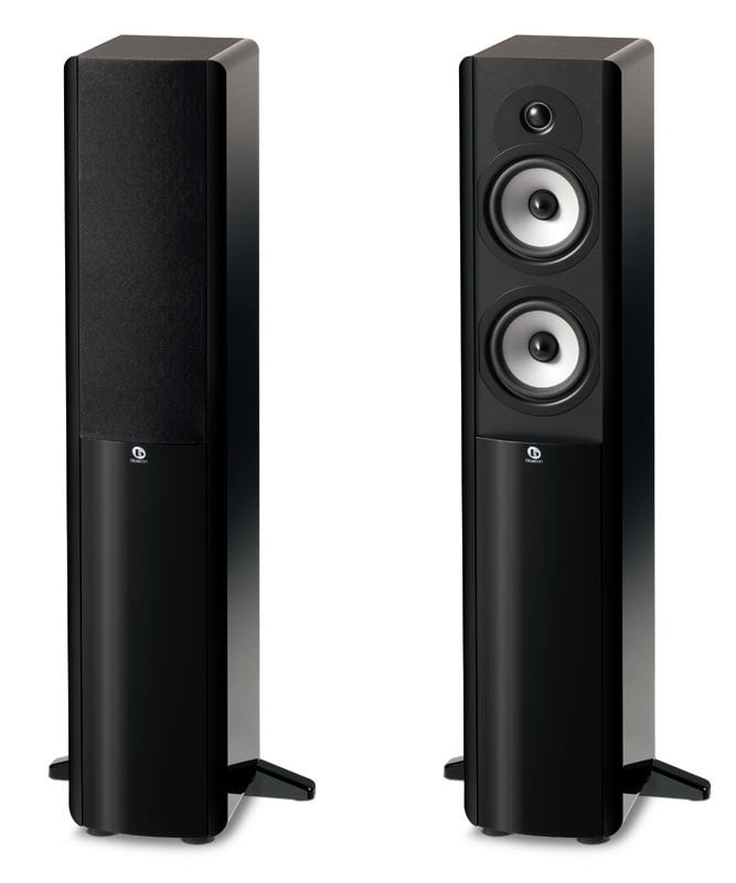 Boston Acoustics speakers, from Peabody, MA have always been among the best sounding “budget” loudspeakers available. The A250s are two-way speakers that measure 33-1/8”H x 12-5/8”W x 8-7/8”D with dual 5.25” DCD ceramic/glass fiber polymer woofers, and Boston’s 1” Kortec soft dome tweeter. The DCD stands for the Deep Channel Design of the drivers that according to Boston, deliver more bass with less amplifier power that results in a cleaner, fuller sound. These drivers produce a frequency response of 45Hz-25kHz, 89dB sensitivity, 8ohm impedance, 175w power handling, five-way binding posts, and weigh 29.3lbs each. These speakers are very stylish with high-contrast high-gloss cabinets, textured tops, rounded edges, and magnetic grills that one would find on more expensive speakers. They also have a ported cabinet and internal bracing for less cabinet vibration for added sound quality. These speakers come with a five-year warranty.