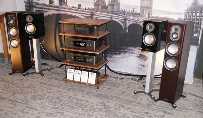 se somewhat plain looking speakers from Danish manufacturer DALI. The real reason I went in the room is that it was empty of guests, and I just wanted to get off my feet for a little while before returning home. The rep asked me what I would like to listen to, and I said, “something easy-going” since my hearing was a bit fatigued from listening to demos all weekend. I was immediately struck by the vivid soundstage from a latin-american album that I foolishly forgot to write down, but the spectral balance and outstanding imaging of the system stood out to me, even after demoing dozens of high-end systems for the past three days. The rep told me that the speaker model was the Oberon 7, and I was shocked to learn it was priced at a modest $1,400 per pair. These sounded better than some systems whose speaker cables cost more than that! The website discusses a few unusual features of the Oberon 7s, but I didn’t see anything about its design so particularly radical that would explain why these sounded so good to me there and then. Maybe it was just acoustic serendipity with the room? I am hoping to hear more Dali speakers in the future to see if that magic can be recreated.