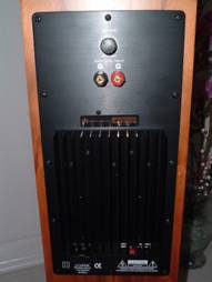The rear of the Intimus tower is quite impressive. The top midrange/tweeter section is rear ported and in its own isolated enclosure from the active ported subwoofer. |
