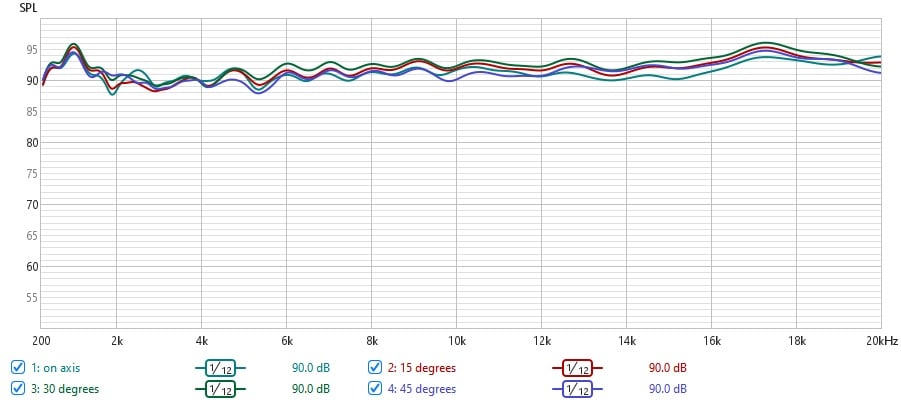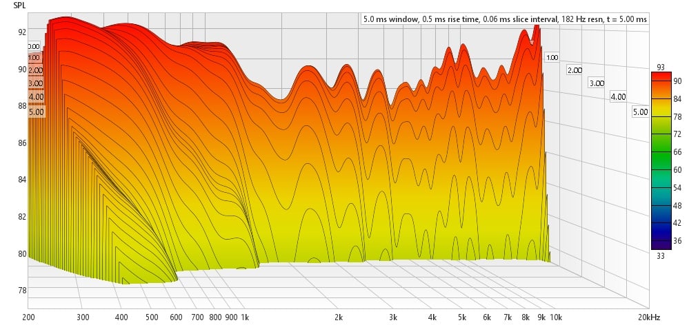 I am not a big fan of waterfall graphs but it does show any obvious signs of ringing or distortion caused by resonances. Here as you can see, it’s extremely clean within the 5ms interval. Meaning you are getting a very inert speaker that’s free of problematic resonances.