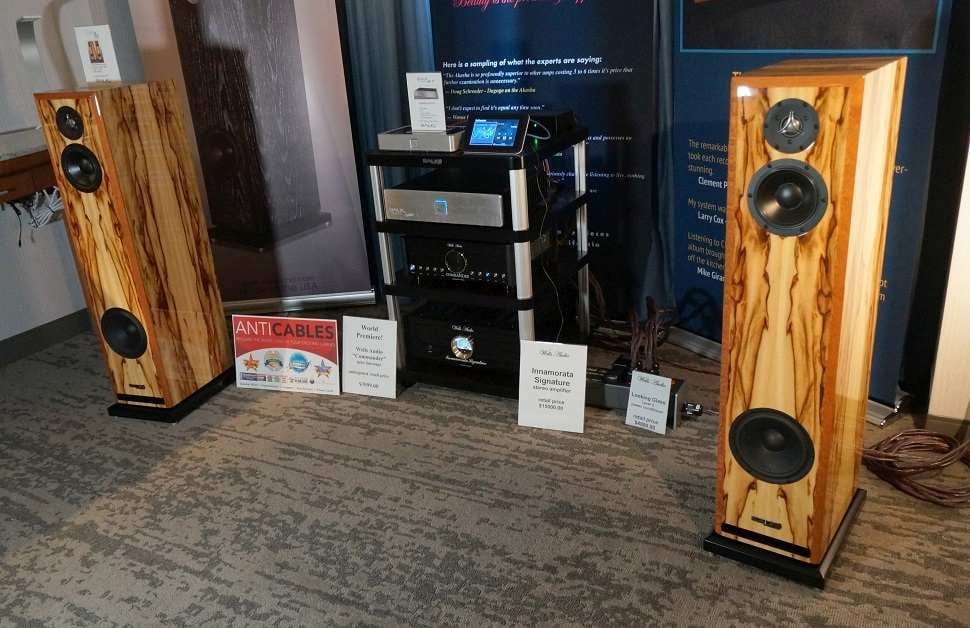 When we hear the Salk Song3 floor-standing speakers two years ago at AXPONA, we were mightily impressed by the exquisite sound that could be had for such a reasonable cost. This year Salk has brought an upgraded model featuring beryllium tweeters and an Audio Technology midrange. In our listening demo, we were again impressed by the resolution, detail, and pristine imaging, all of which rivaled far more expensive speakers at the show. As we said in our initial preview of the Song3 speakers, one of the secret ingredients of the low cost is the woofer, a Satori 7.5” driver, which has excellent performance yet does not cost a fortune. Another ingredient, as with the LSA speakers, is that Salk Sound speakers are manufacturer direct, so middlemen costs are eliminated. The new components of the BeAT Song3 are quite expensive and do add considerably to the cost, but those who want to take their sound to the next level are going to have to pay for it. Salk Sound’s designs are reliably good, and the Song3 BeAT are certainly no exception. Audiophiles who do not have unlimited funds can always find a safe bet with the Salk Song3 series.