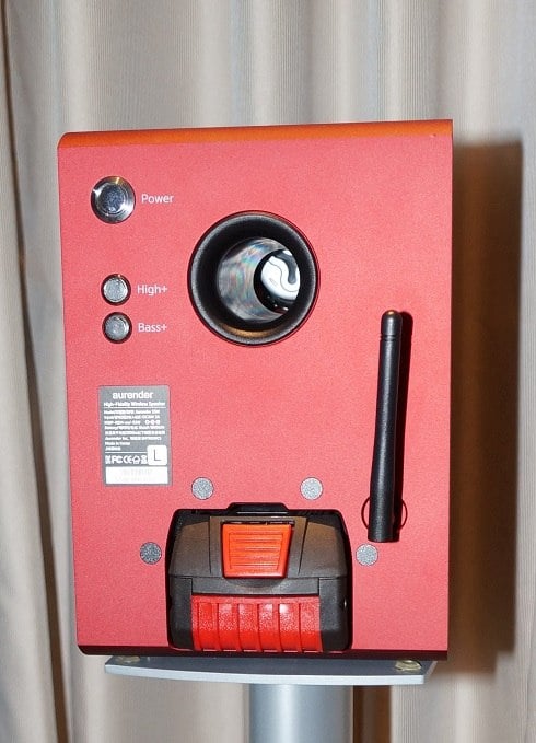 At first glance, the Aurender SW5 speakers look like somewhat conventional bookshelf speakers. Look a bit closer and you might see something strange, or more accurately, the lack of something: no cables at all. The SW5 speakers are not only self-powered, they also carry their own power supply in the form of an 18v Bosch battery that is normally used for power tools. So the SW5 has no signal cable and no power cable; it is a true wireless speaker. It streams through a USB dongle transmitter that you can plug into any USB device for instant streaming from a wide range of sources at a 16-bit/44.1 kHz sampling rate. The battery will supposedly give you 50 hours of playback from a single charge. The drivers are a Scanspeak tweeter and SEAS woofer, and the enclosure is made from thick aluminum, so the parts for a high-fidelity speaker are there. Indeed, I listened to a selection of recordings and was surprised by the nicely balanced sound and punchy bass that the SW5 could produce. The size and lack of cables make the SW5 a truly portable hi-fi speaker. The user could take these things anywhere, from a bedroom for easy listening, to a desktop PC system, to the office for a presentation meeting, or to a party at the beach (hopefully, Aurender will include a carrying case to make transit easy). One thing I like is Aurender has wisely chosen to use a widely available, high-power battery instead of a proprietary design. Aurender is currently looking for a North American distributor for the SW5, and I hope they find one because this product could be a hit for how practical it is.