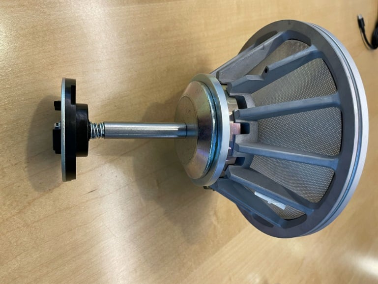 The tweeter-on-top design not only provides a distinctive aesthetic, the design also provides acoustic benefits. The baffle mounted tweeters also have elongated tubes, but they are hidden in the cabinets. The tweeters have improved motors and two-point decoupling and shock absorption gasket. The dome diaphragms themselves, while carried over from the prior series are worth noting. They are made of 30-micron thick aluminum with a thin layer of carbon applied by physical vapor deposition (“PVD”) to stiffen the dome. The design also includes a profiled ring on the back side of the dome, which helps push the breakup point to 47 kHz, up from 38 kHz. The tweeters are protected by a new protective metal mesh, which is more open, providing increased performance without sacrificing protection.