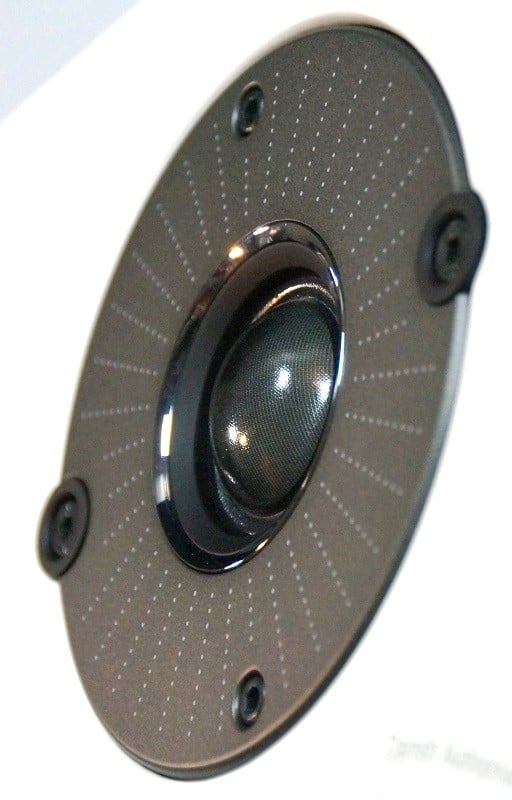 The OBERON 7C tweeter is a 1.1” fabric dome that uses an iron ferrite motor and ferrofluid in the voice-coil gap for greater thermal handling. The bass drivers’ cones use a composite of fine paper pulp and reinforcing wood fibers. One interesting aspect of the bass drivers occurs in the motor section with the use of SMC or Soft Magnetic Compound. SMC is used in the motor section around the gap where the voice coil rests. What SMC does is transmit the magnetic field without being electrically conductive. The advantage in that is a major reduction in eddy currents and hysteresis and thus reduction in odd-order harmonic distortion and an increase in upper-frequency sensitivity. For those who want the gory details about SMC use in drivers, DALI has this page that describes it, but the reader can also refer to the patent for a more precise description. The motor uses a reasonably sized 3 ¼” diameter magnet with a ¾” thickness and is vented through the pole piece.