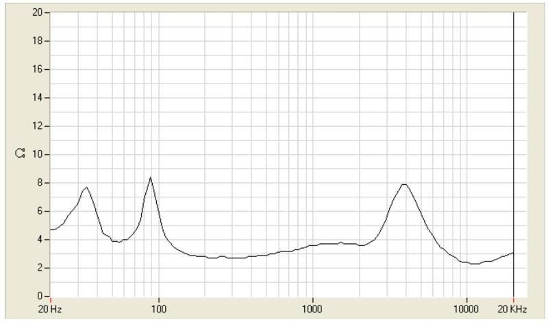 At first, I was confused by the A6-6T6s. eD claimed a frequency response down to 40Hz and I was hearing nothing near that. After checking my own measurements (and more importantly eD's), I discovered that this wasn't a +/-3dB point but a "lowest frequency it can play" point. Their own graphs show it rolling off much higher (closer to 60Hz). This jelled really well with what I was hearing through my listening tests and with the Rives Test CD II. As can be seen from the Impedance magnitude curve, the low point between the low frequency peaks is at approximately 55 hz. This point indicates the Box tuning frequency. Since the cabinet is vented, it should fall off 24 db per octave below the box tuning and with a ½ octave between 55 and 40 hz, the output should be down about 12db at this point. Bass 12db down will no longer offer a substantial contribution to the overall output.