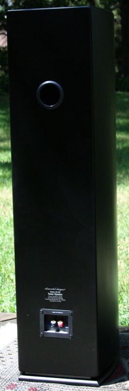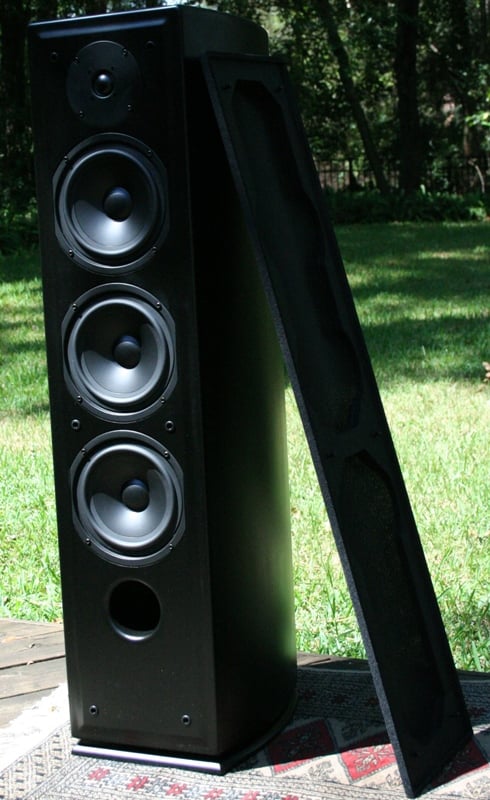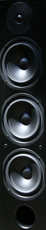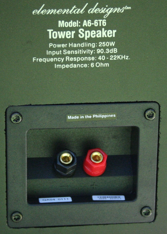 There is a front port near the bottom and a second on the back just between the tweeter and the topmost woofer. The front port is covered by the same wire mesh/fabric mix used on the grill. The back port doesn't have this. The front baffle is raised and there is a 1.3" tweeter and three 6.25" woofers flush mounted. All the drivers are black as is the speaker. If you are looking for speakers to disappear in a dark room, you could do worse than the A6-6T6. If you are looking for a good looking speaker, you could do a lot better. Then again, at $500 a pair, there really isn't all the much to complain about.