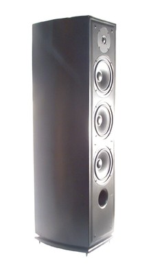 A6_grilloff.JPGThe speakers are 40" high with the tweeter about 36.5" off the ground (just a hair above my seated ear level). The sides are rounded which gives the speakers sort of a bloated look (that sounds worse than I mean it). I've had experience with a lot of different speaker designs and one thing I've found with the ones with the rounded sides is they tend to be less sturdy. With the carpet spikes that don't penetrate the carpet, my medium pile carpet, and rounded sides of the speaker, I ended up with a speaker that wasn't as steady as I'd have liked. I never got the impression that it would tip over, though, so unless you have really active kids or a Great Dane, you should be alright.