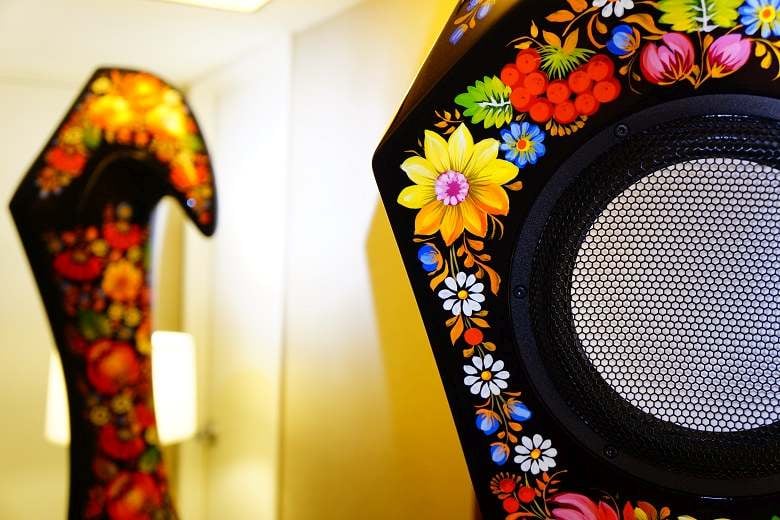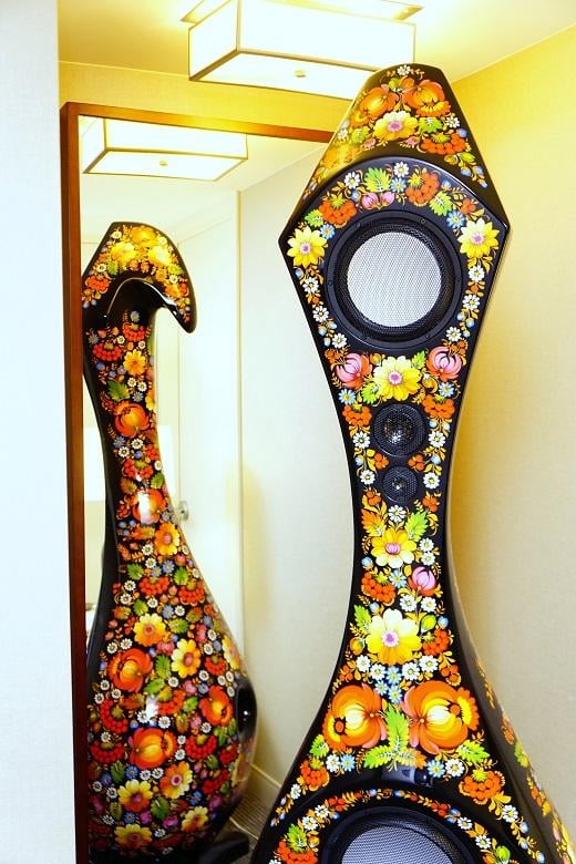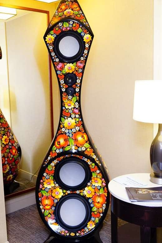 Also in the Volya room was an individual Bouquet speaker on passive display which brought together audio equipment and visual art in a more feminine manner. The Bouquets are individually hand-painted by a Ukrainian folk artist in a style known as Petrikovsky painting. Painting the Bouquets is done very carefully, and, because if this, each pair takes from four to six months to complete. Why choose between having speakers in a room or a painting when you can have both? The design on the Bouquets were lovely and intricately detailed.