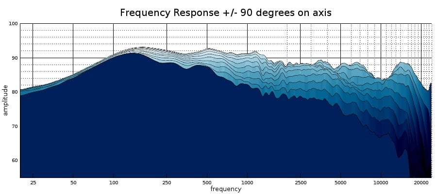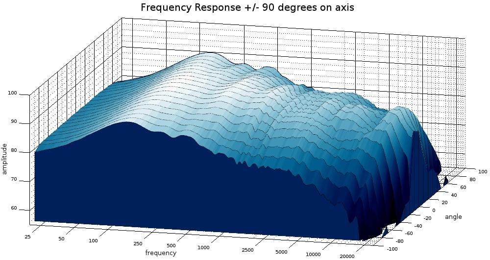 Fluance Signature Tower speakers horizontal frequency response +/-90 degrees from axis: 3D view