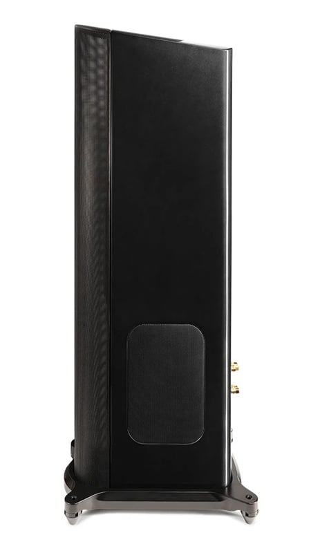 The midrange and tweeter drivers described above are both passive, taking the signal provided by your power amplifier and splitting it up in the typical fashion with a passive crossover circuit. But the bass frequencies are passed on to the T44’s internal 56-bit, DSP-controlled amplifier, which drives a single 5x9-inch Long-Throw Quadratic Bass Driver. This racetrack-shaped woofer is treated to 250 watts RMS (500 watts peak) of power, and is supported by a pair of passive radiators acoustically coupled to the woofer to extend low-frequency response and improve low-frequency impact with minimal distortion. This arrangement promises tighter, more controlled bass that extends deeper than you’d expect from a compact floorstander — theoretically eliminating the need for an external subwoofer. Of course, even when paired with very bass-capable speakers, external subs can have benefits because the user can place them for optimal response within the room. Nevertheless, GoldenEar’s hybrid towers do deliver on their promises when it comes to bass performance, in my experience anyway. As the smallest of GoldenEar’s current lineup of hybrid tower speakers, the T44 isn’t going to deliver bass to truly subterranean depths. (The much larger Triton Reference speaker, launched back in 2017, definitely does deliver truly full-range performance, and I would imagine that it’s only a matter of time before we see larger models coming from GoldenEar under PML Sound ownership.) But I would expect tight, musical bass with very respectable extension for such a small speaker. The specs indicate in-room bass down to about 32 Hz, with the speaker down 6 dB at 29 Hz (anechoic).