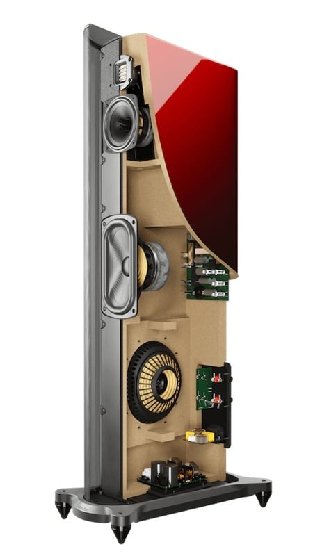 Like the taller T66, the T44 features a slim, curved cabinet design that reportedly reduces unwanted coloration while minimizing the speaker’s visual impact on the room. Also like the T66, the T44 is offered in high-gloss Piano Black ($4,900/pair) and Santa Barbara Red ($5,300/pair) finishes, delivering a level of aesthetic appeal that is a definite step up from the Triton towers from GoldenEar’s first generation of products. Another improvement over these predecessors, from both a visual and mechanical perspective, is the T44’s full-footprint cast aluminum base, which provides stability and durability. Supplied with adjustable outrigger spikes for carpet and pads for hard floors, the aluminum base can be adjusted without lifting the speaker, and in my opinion looks an awful lot better than the rounded MDF bases found on older GoldenEar speakers.