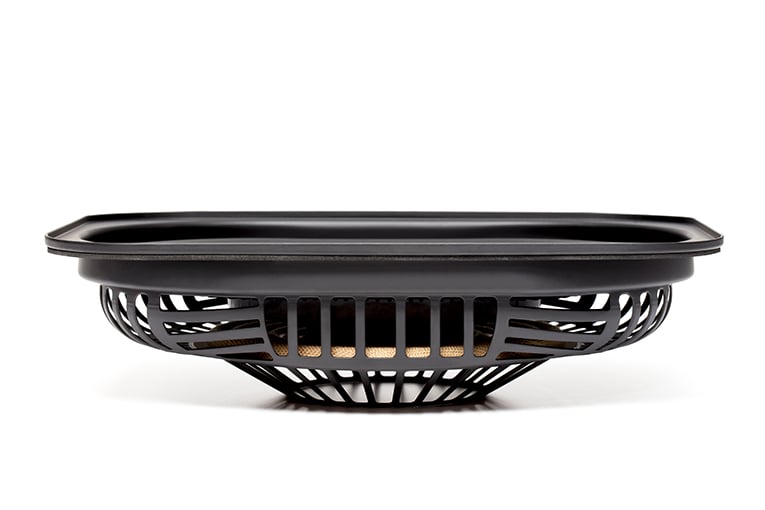 Three 5" x 9" front-mounted quadratic subwoofer bass drivers |