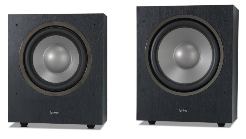 The Infinity Reference R10 (left) and R12 (right) subwoofers.