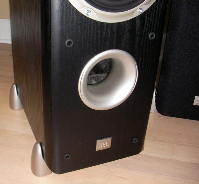 The L880s are big, heavy, rock and roll-looking speakers, weighing in at 54 lbs. each and standing 39" tall. They are available in Cherry, Beech or Black Ash (the color I tested). The cabinet is built from 1/2" MDF that is well braced inside, making for a very sturdy floorstander. There are four plastic feet to keep the tower stable, and they are silver. JBL ships spikes that can be screwed in to the bottoms for use on a carpet. Also included are rubber feet for use on hardwood floor. The silver plastic feet feel cheap and in my opinion detract from the overall appearance of the speaker - of course those of you who like futuristic styling may disagree. The silver-on-black will certainly match up well with many flat panel displays currently on the market.