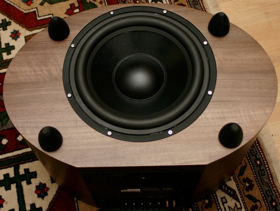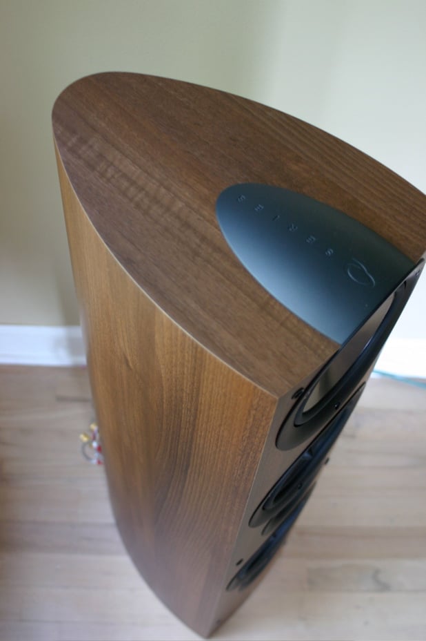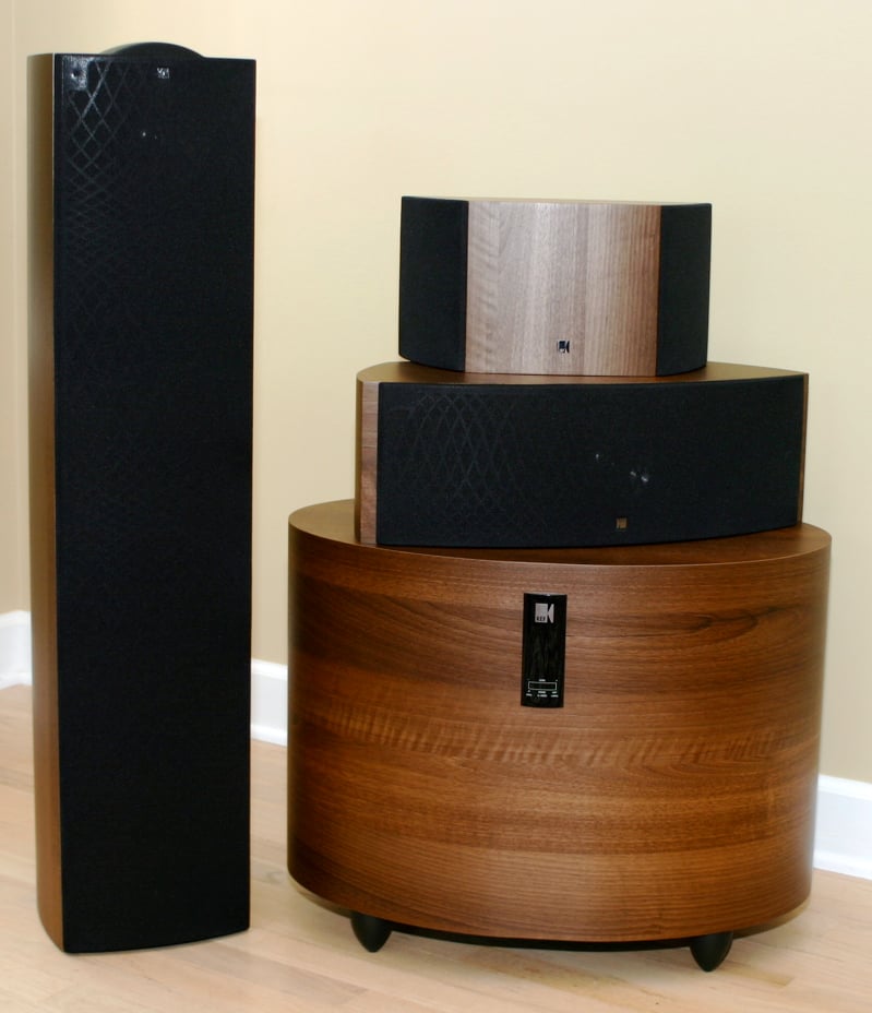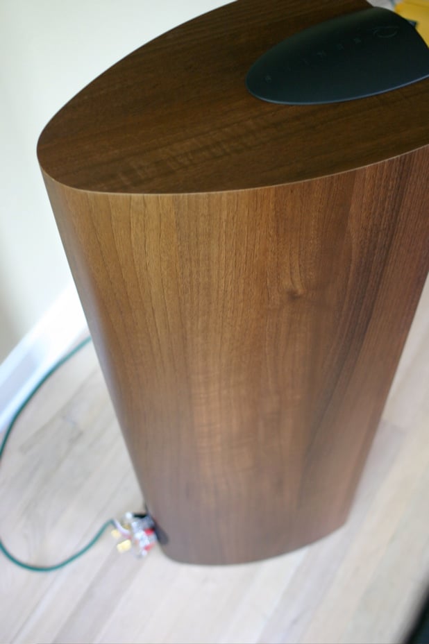 I requested the speakers in the available Apple finish, but received it in Walnut. I must say that I was very disappointed in the Walnut veneer. For speakers that have such a unique shape and design, I found the Walnut to be drab and boring. The finish was not so bad looking on the towers, but I especially disliked the way it played out on the sub. It just looked cheap to me.