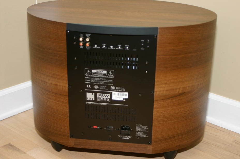 One problem that I found upon turning on the sub, was a ground loop hum. I had never experienced this with my reference Velodyne sub, nor had it occurred in any other sub I had used with the system during reviews. After an hour or so of troubleshooting, I found the culprit to be, surprise, the Time Warner HD cable box/DVR. But the bigger issue was that the KEF PSW3500 was susceptible to this when nothing else in my system, not to mention other less expensive subs from other manufacturers, has been. I was able to get rid of the hum by putting one of those orange plug/adaptor things you get from the hardware store on it - hardly an acceptable permanent solution, but it worked for my review period. I tried flipping the GROUND IN/OUT switch on the back (which KEF recommends for fixing a ground loop hum), tried different electrical outlets, but nothing worked. It was a loud hum that was audible with or without music or movies playing.