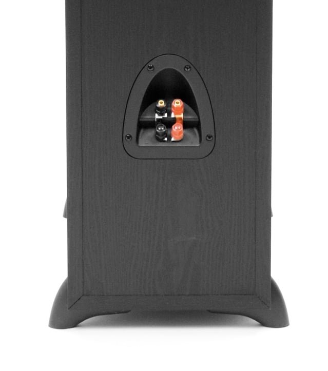 Klipsch claims an impressive -3dB point at 35Hz which, with two 8" woofers, is probably doable. The dual pairs of 5-way binding posts on the back are obviously a result of marketing research, a desire to sell more speaker wire, or some sort of bulk discount on the binding post part as there is no reason that anyone at Audioholics can think of that a 97.5dB sensitive speaker would ever need to be bi-amped.