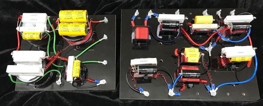 I opted for low mass diaphragms woofers with excellent lower midrange qualities that could reinforce the 7” midrange over a couple octaves with a soft slope low-pass filter. The Signature SE uses a pair of 10” woofers with QTS of 0.46 and linear Xmax of 7mm, each with a sensitivity of 88 dB. These two drivers naturally benefit from mutual coupling to raise the sensitivity further. The low bass employs a 2nd order high pass filter to prevent over-excursion below 30 Hz. This filter trades off impedance for a boost at 35 Hz. The Q of the filter is set to provide 2.5 dB boost before rejecting the very lowest frequencies.