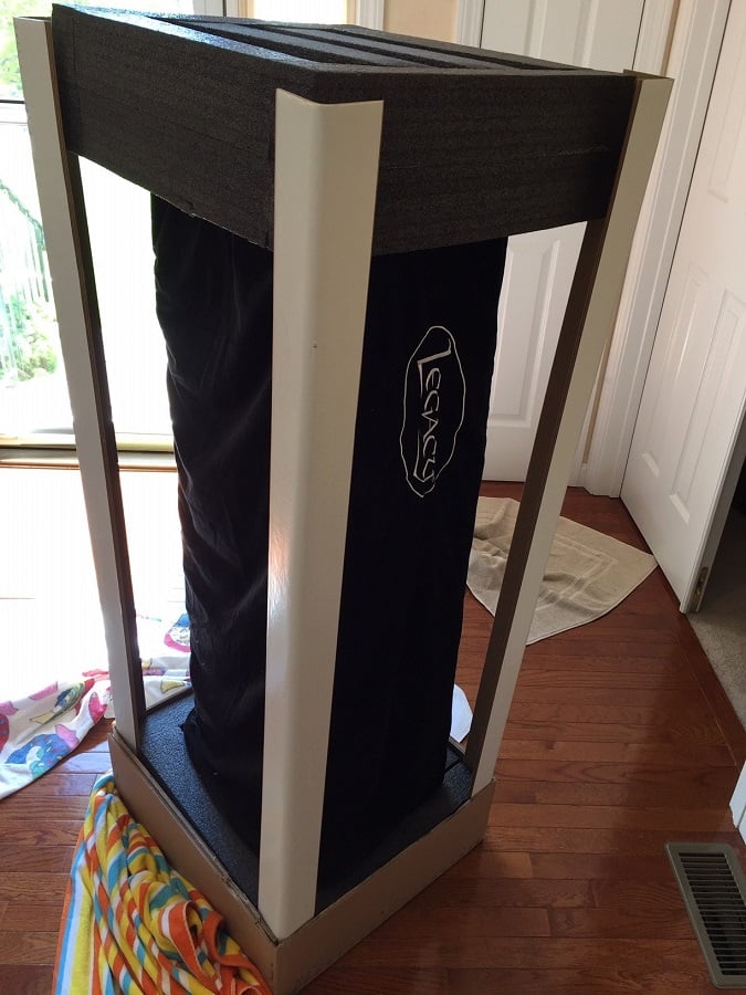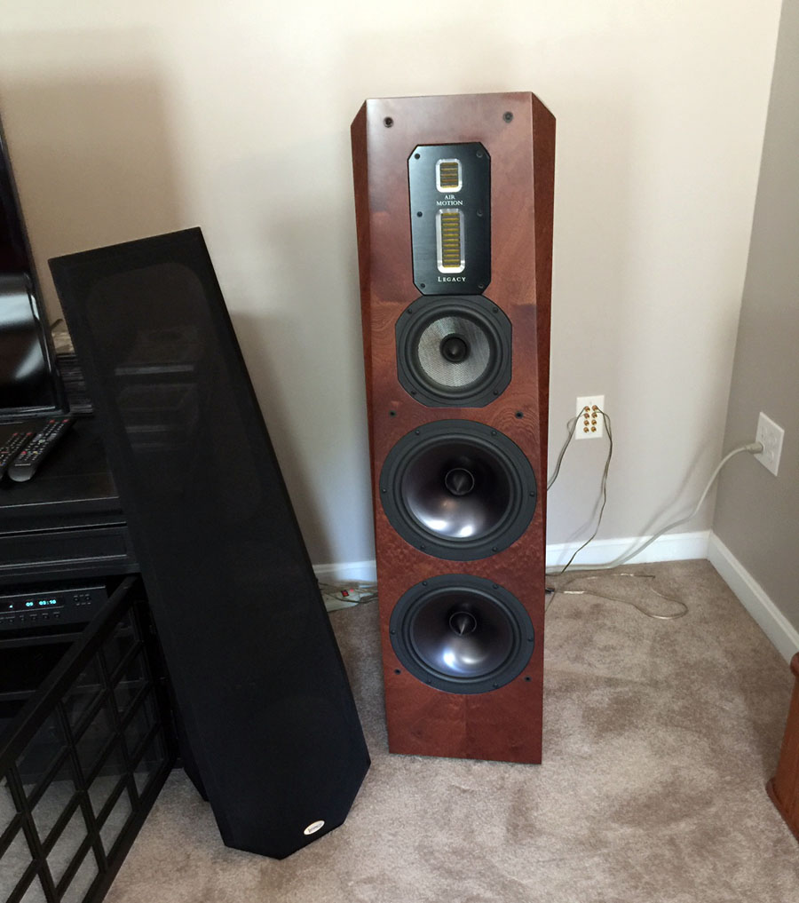 So we got the speakers up from the garage and in the front door. These things were really packaged nicely. A heavy-duty outer carton with generous foam endcaps held things securely in place. Hard cardboard reinforcements at each corner ran the length from top to bottom. The speakers themselves are a good four inches in from the outer surface of the carton, so they’re well out of harm’s way. Each speaker was clothed in a full-length velvet bag, beautifully adorned with a silver Legacy logo. Most of Legacy’s speakers are very large, monstrously heavy affairs. The company obviously knows how to package its products for safe transport. They better know—the alternative is simply not tenable.