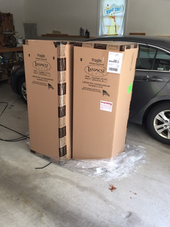 My wife hates this. In all honesty, my wife and I get along great and are perfectly compatible, patient and accepting of each other in virtually every way. She’s simply a fabulous person—smart, funny, compassionate, a 5-star chef, etc.— and I appreciate my good fortune in being married to her beyond what I can put into words. But she gets annoyed that I save boxes, drives her nuts. Well, she’ll be happy to know that I’m not saving these Legacy boxes. They’re just too big. I’ll keep the velvet bags, but I’m never moving these speakers. They’ll either stay in the house forever or I’ll give them to Jason if/when I lose my hearing due to old age.