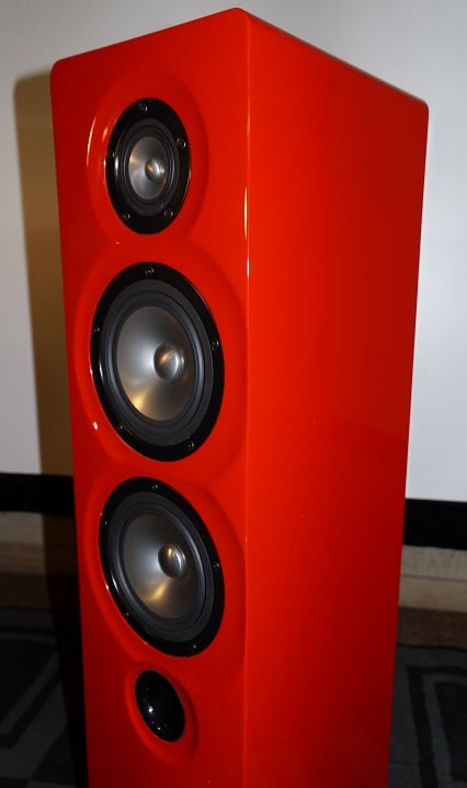 MarkAudio-SOTA speakers place an emphasis on use of the MarkAudio full-range drivers as their chief selling point, which is expected given the name of the company. The MarkAudio drivers are full-range drivers, and, as such, should be able to cover most of the frequency range of music as a single driver. The Cesti T uses two 4” drivers and one 2” driver. Typically, full-range drivers are used as the sole driver in a speaker, in order to avoid the adverse effects of using a crossover and interference that can occur when multiple drivers. Full-range driver enthusiasts claim that the sound of a full-range driver speaker is purer and has greater fidelity, since there is no way to introduce any phase conflicts that can occur at crossover frequencies in speakers that divide frequency bands between drivers. However, the Cesti T uses two different full-range drivers and a crossover, in defiance of the traditional use of full-range drivers. The reason may be that MarkAudio-SOTA wanted to avoid beaming issues were they to use their 4.4” driver by itself, and their 2” driver wouldn’t have had the dynamic range needed for a tower speaker. In addition to that, the 4” driver would be far more capable of bass playback, and the 2” driver would be more adept at treble. This then begs the question: why use full-range drivers in this sort of orientation to begin with?