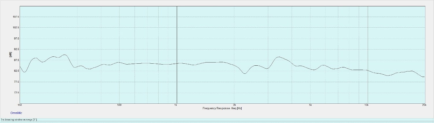 I used a Dayton Audio OmniMic test system with 1/12th octave smoothing for frequency response measurements. I pulled the speaker into the middle of the room and took measurements at ear level (about 38”) and from distances of 1 and 2 meters away from the front of the panel. Although the results were quite good, this is not how MartinLogan measures their speakers. Their concern is how a speaker sounds at the listening location, in accordance with their recommendations, I moved the speakers so they were between 2-5 feet (.7-1.5 meters) from the back and side walls, and took some measurements from an average listening distance of 2 meters. Not surprisingly, the measurements were slightly more linear.